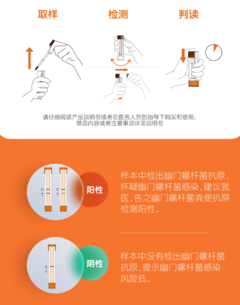 这款幽幽管首次实现取样和检测“验孕棒”式一体化设计,可以通过检测粪便样本中是否存在幽门螺杆菌抗原判断感染。