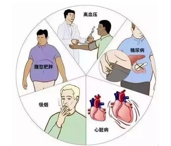1、不良饮食生活习惯:吸烟、饮酒、嗜咸、嗜油腻、在外就餐多、久坐少动。