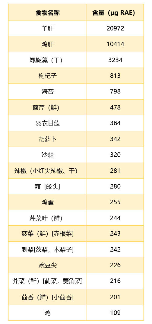 维生素A有助于维持暗视力,维持皮肤和黏膜健康,以及维持免疫系统的正常生理功能。主要来源于动物和植物性食物。