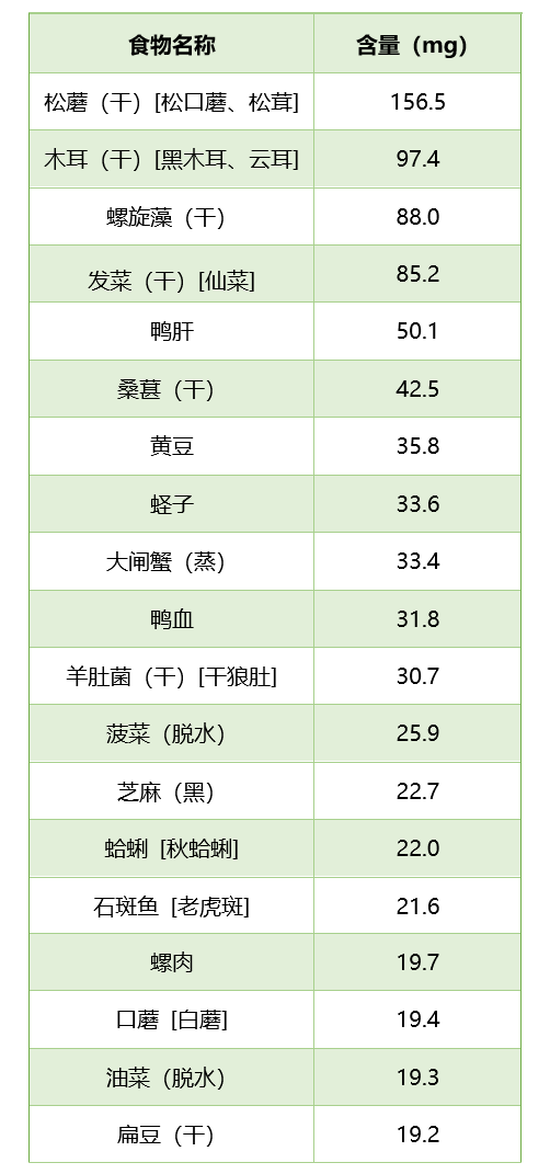 铁是血红细胞形成的重要成分。主要来源于动物肝脏、动物血和红肉。