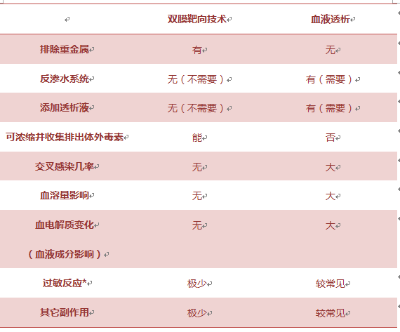 双膜靶向技术是一种全新的血液排毒净化方法,与血液透析技术相比,也更加安全:
