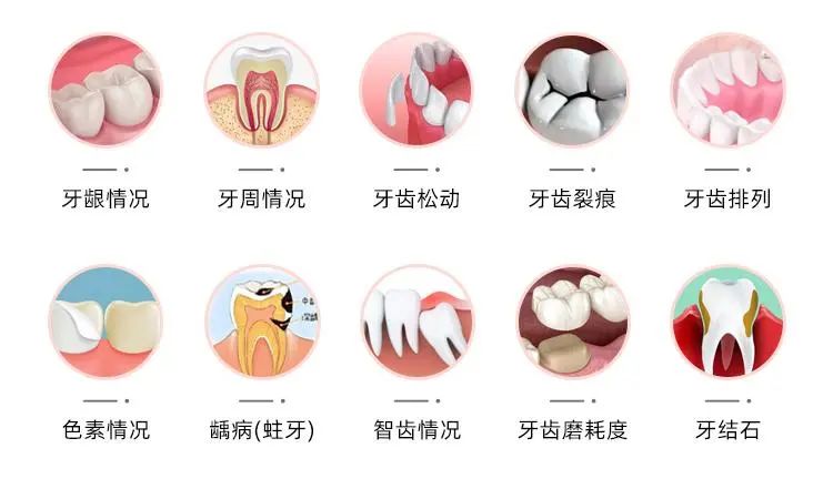 侧重检查蛀牙、牙龈出血/肿胀、口腔异味等情况,还要定期清理菌斑牙石,及时修复蛀牙、缺牙,避免坏牙带来一系列的健康隐患。