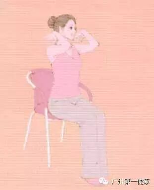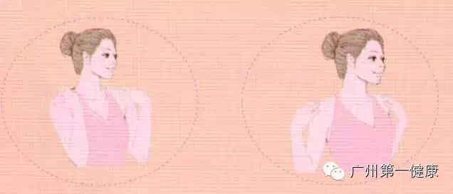 吸气,双臂向外打开,双肘向上、向后、向前慢慢画圆,如果可以的话,尽量双肘在胸前相触手背在体后相触,注意双手不要离开肩部,保持自然的呼吸。