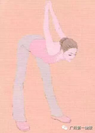 呼气,身体慢慢向前、向下伸展,尽量让腹部贴近大腿。吸气起身,呼气向下,连续做10次。