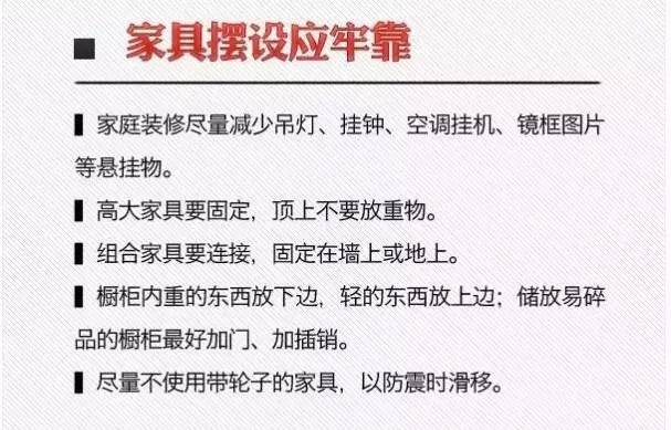 地震过后尽量不要在围栏、墙壁、平房,电线杆附近停车,防止倒下时造成人员伤亡和财产损失。