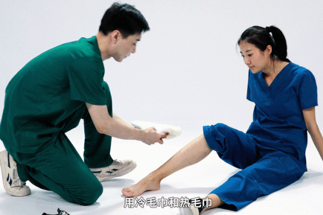 用冷毛巾和热毛巾交替外敷抽筋部位,或轻柔地按摩抽筋部位,改善肌肉供血,以缓解肌肉疼痛。如果抽筋反复发作,应及早就近就医。