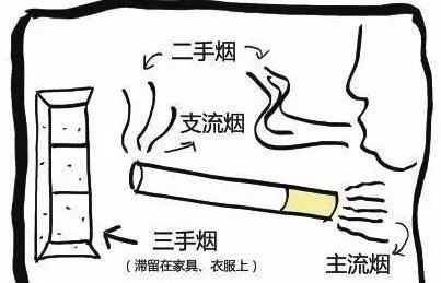 三手烟:吸完烟后附着在衣服、家具、皮肤表面的残留物,会传播给身边的人。