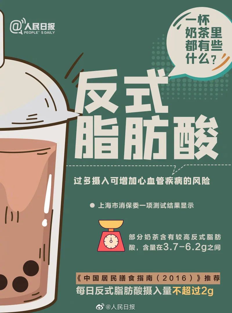 看着这些真的案例,你手里的奶茶还香吗?这个时候可能会有小伙伴要讲,明明茶是有益健康的,奶是有营养的,为什么混合在一起就成了“毁健康”呢?下面我们一起来看看人民日报出的一份关于奶茶的“体检报告”吧!