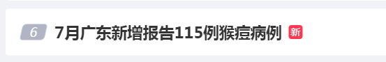 2023年7月1日至31日,中国内地(不含港澳台)23省(区、市)新增报告491例猴痘确诊病例,其中广东报告115例、北京报告81例、四川报告49例、浙江报告40例、湖南报告33例、江苏报告31例、上海报告25例、安徽报告19例、天津报告17例、湖北报告17例、河南报告14例、辽宁报告12例、山东报告12例、吉林报告9例、云南报告4例、陕西报告4例、福建报告2例、重庆报告2例、山西、内蒙古、广西、贵州、青海各1例,无重症、死亡病例。