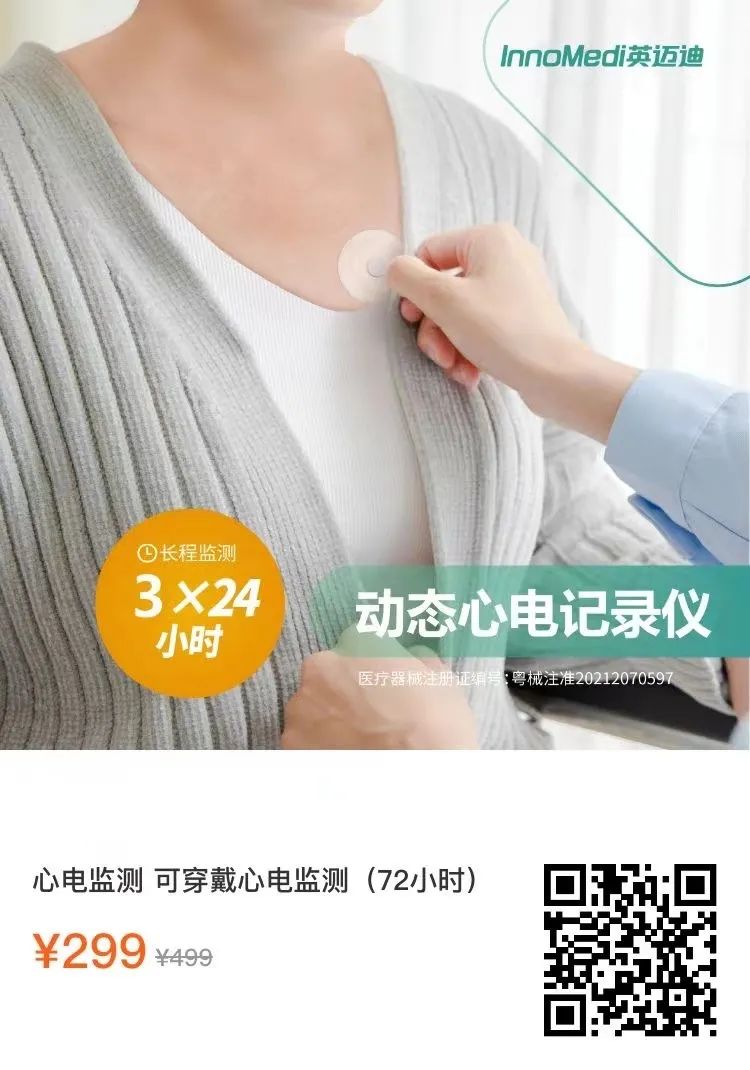 穿戴式动态心电监护产品采用的无导线贴片设计,小巧轻薄,全身防水,穿戴简单。产品摆脱了传统动态心电图的电极点和导联线限制,无线无负重,不影响日常生活,即使夜间佩戴,患者也能安然入眠。长达72小时的持续监测,不但能更多的获取有效数据,而且可以捕捉到更多一过性和隐匿性的异常心电变化。
