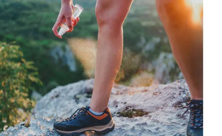 野外活动可用经检验合格的驱避剂,喷涂在皮肤及衣服上,预防蚊子。