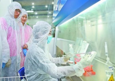 科研人员在高通量、高内涵药物综合研究平台实验室内进行实验操作。新华社发