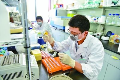 上海正大基因科学研究院的技术人员正提取脂肪细胞进行PPC可编程细胞的培养,以便后期对有缺陷的基因进行功能修复。新华社发