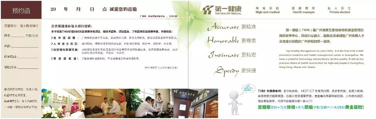 广州第一健康管理中心为致力成为中国健康管理高端行业的第一品牌, 依托雄厚的资金实力、专业的医疗团队、尖端的医检设备、覆盖国内外知名医疗机构网络资源、强大的客户服务体系,为会员提供高端体检、健康管理、私人医生等一系列服务,是目前国内成长最快的国际健康管理连锁服务机构。