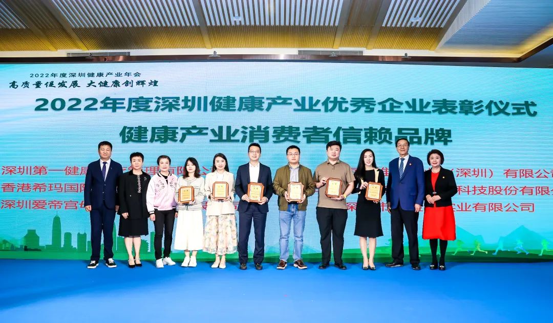 2023年3月17日,由深圳市科学技术协会、深圳市社会组织管理局、深圳市健康产业类行业协会联合党委指导,深圳市健康产业发展促进会、深圳市保健协会、深圳市恒康泰医疗科技有限公司主办的“高质量促发展 大健康创辉煌”2022年度深圳健康产业年会在大鹏新区麓湾国际公馆度假酒店举行。深圳健康产业优秀企业齐集一堂,第一健康集团副总裁梁冰、集团总裁助理杨佳韵代表第一健康集团应邀出席,并收获“健康产业消费者信赖品牌奖”、“健康产业科技创新奖”双料殊荣!
