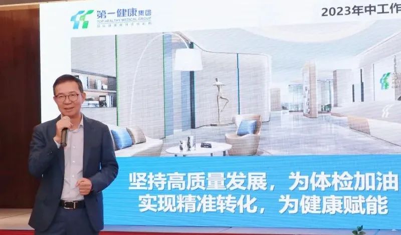 在会议的最后环节,杨帆总裁以《坚持高质量发展,为体检加油!实现精准转化,为健康赋能》为主题做了专题报告,分析了集团上半年的经营成果,并从体检行业的现状、从市场空间、体检覆盖率等角度分析告诉大家第一健康为何而坚持?又坚持做到了哪些?接下来还将坚持什么?并且再次强调要以客户为中心、不断打磨服务品质并广泛进行创新发展,持续致力于打造中高端第一品牌。
