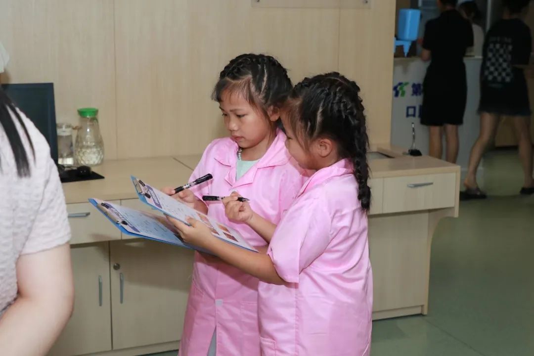 为了让孩子们更有“医生”的真实感,同时摆脱“白大褂恐惧症”,活动初始为孩子们换上白大褂,孩子们摇身一变成为小小医生啦!