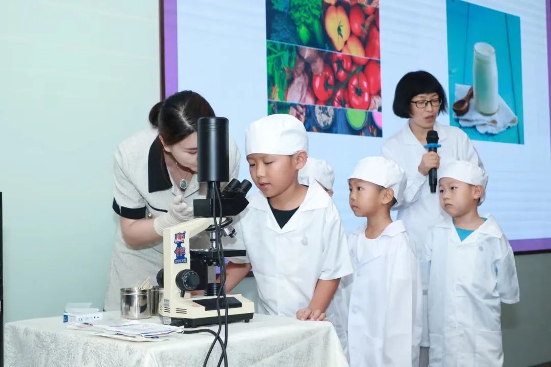 活动现场,特邀讲师王春红副主任医师为孩子们科普肠道菌群的好坏之分、口腔保健、科学护眼等相关知识,让他们沉浸式地学习更多医学知识,同时帮助孩子们树立正确的健康观念,活动中还分组体验高倍显微镜下的细菌形态、口腔检查、视力测量等项目。