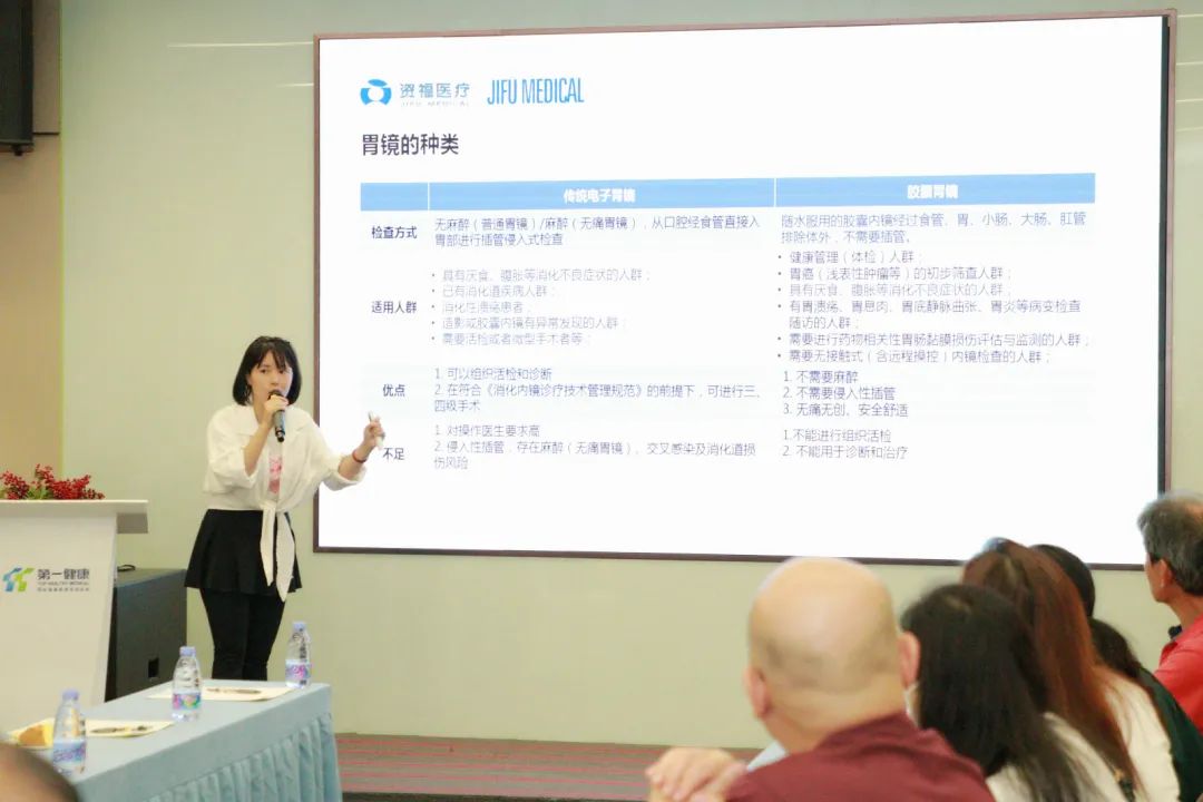 座谈会上,第一健康特别安排了到访嘉宾们都关注的胶囊胃镜介绍环节,结合生动详实的案例讲解了胶囊胃镜检查的必要性、适应症、突出优势等知识。大家通过讲座,更好地了解了胶囊胃镜检查技术,纷纷表示受益匪浅。(介绍磁控胶囊胃镜)