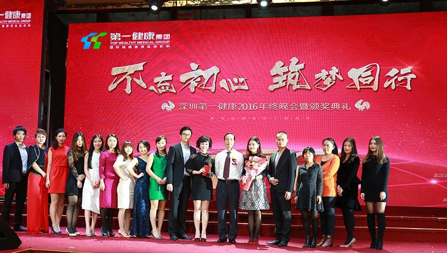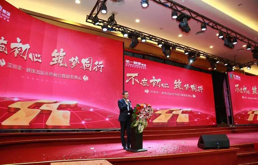 2017年1月12日,“不忘初心,筑梦同行”第一健康2016荣誉表彰典礼暨年终晚会在深圳香蜜湖好世界大酒店隆重举行,第一健康集团董事长刘朝霞女士、总裁杨帆先生、副总裁兼深圳公司总经理黄建榕先生、总裁助理兼法务总监梁冰先生、深圳公司副总经理王东林女士、深圳公司副总经理兼营销总监张雄志先生及合作伙伴、深圳公司全体员工欢聚一堂,载歌载舞,为过去的成绩欢呼,向新的征程发出呐喊!在这新旧交替之间,第一健康人完成了一场华丽的成长与蜕变。
