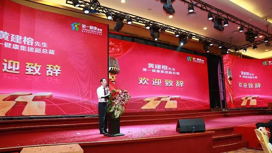 在铿锵有力、振奋人心的《鼓舞中华》中,2017年迎新晚会拉开序幕,喜庆欢乐的气氛顷刻间弥漫整个舞台。活动现场,第一健康集团副总裁黄建榕先生代表集团向全体员工及家属致以节日的问候和新春的祝福!向2016年为公司辛勤付出的全体员工表示崇高的敬意和诚挚的问候。