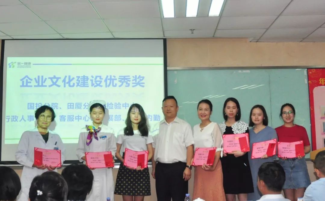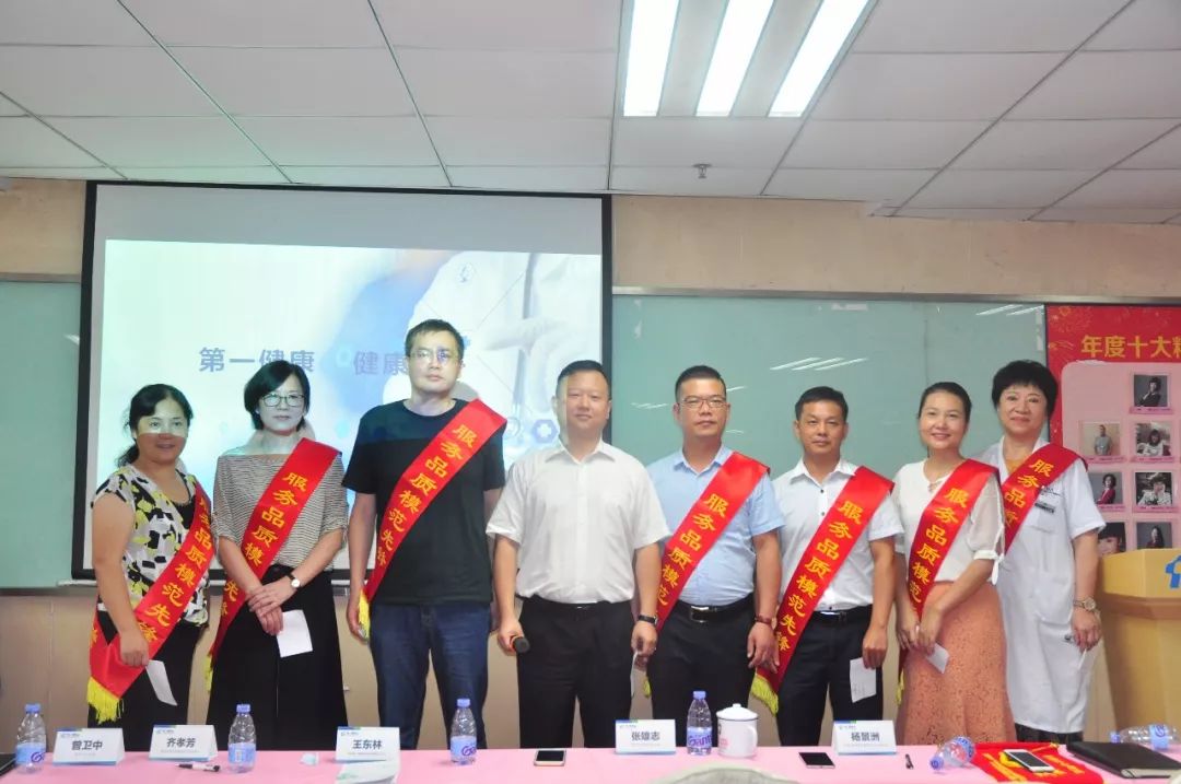 之后,会议的进程来到了颁发二季度优秀奖的阶段。分别进行颁发医疗明星奖、服务明星奖、优秀员工、先进集体、先锋团队等奖项,表彰在2018年二季度表现优秀的员工和团队,肯定了他们的工作,号召大家向他们学习,由此来调动全体员工的工作积极性。