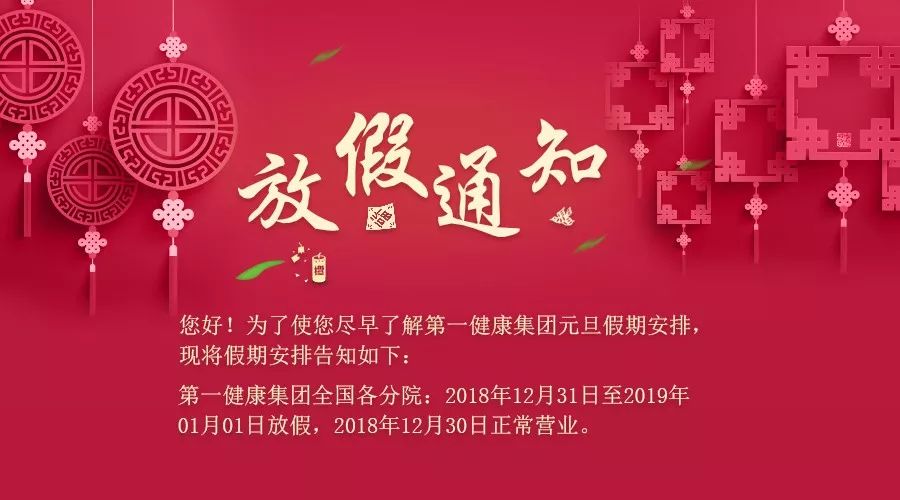 深圳公司荣超分院、田厦分院、第一健康城:2018年12月31日至2019年01月01日放假,2018年12月30日正常营业;