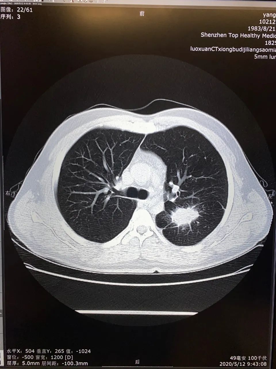杨先生和臧主任缘起第一健康的一次体检。今年5月,杨先生来到第一健康进行体检。其中螺旋ct胸部低剂量扫描结果显示,杨先生左肺下叶背段出现了占位性病变——有恶性征象的“蜘蛛样”肺肿块。