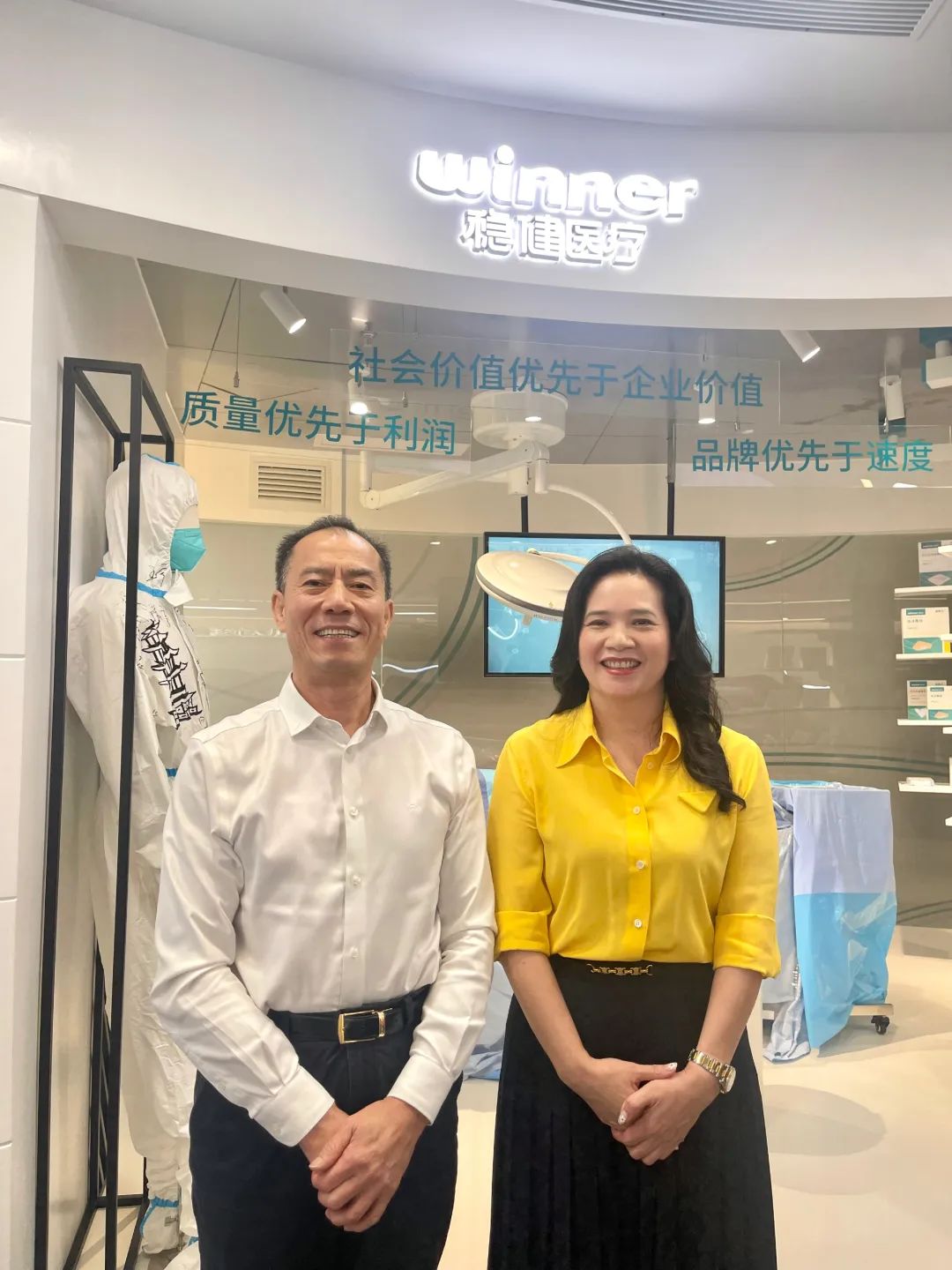 (董事长刘朝霞参观稳健医疗总部)