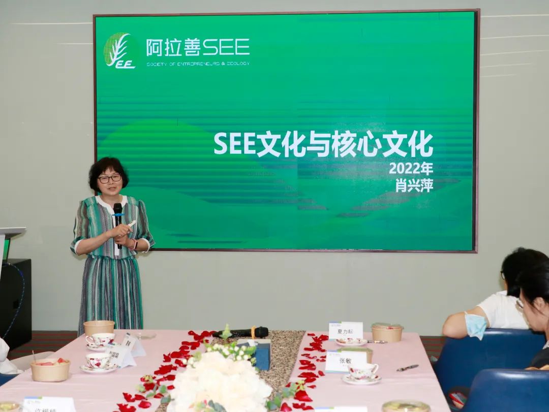 肖兴萍主席在分享《SEE组织核心价值观的研讨》中提及:人总是要有点精神的,一个组织也是如此,这就是组织的愿景、使命和价值观。她对第一健康在国民健康事业中做出的企业担当表示肯定,表示阿拉善SEE以社会责任(Society)为己任、以保护生态(Ecology)为目标的理念,与第一健康一直以来倡导的以“提升国民生命质量,让健康创造生命更大价值”企业使命一致,希望第一健康把阿拉善SEE的责任和精神传承下去,以实际行动践行社会责任,共同推动国民健康事业的可持续发展。