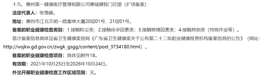 第一健康惠州分院坐落于富绅大厦20-21楼,营业面积接近3500平方米,分为VIP个检区和团检区,每天限量接待150人,环境优雅舒适。