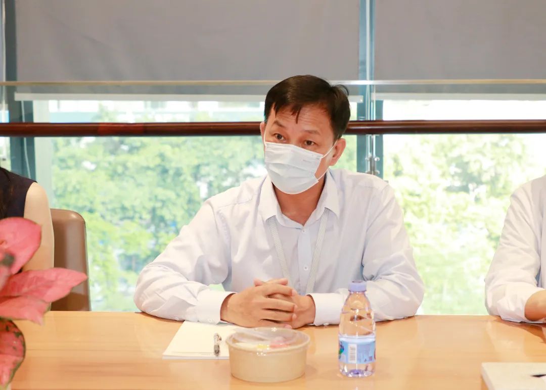 双方到会议室开展座谈会,进行深入的交流。陈海飞会长代表深圳市福田区社会医疗机构行业协会,衷心感谢第一健康作为福田区优秀民营医疗机构的代表,在疫情防控的紧要关头,大力支持福田区有序开展核酸采样工作。