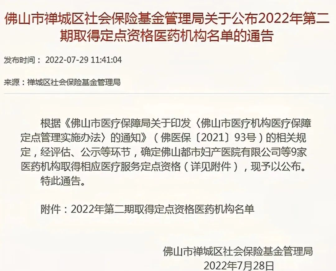 禅城区2022年第二期取得定点资格医药机构名单公布!