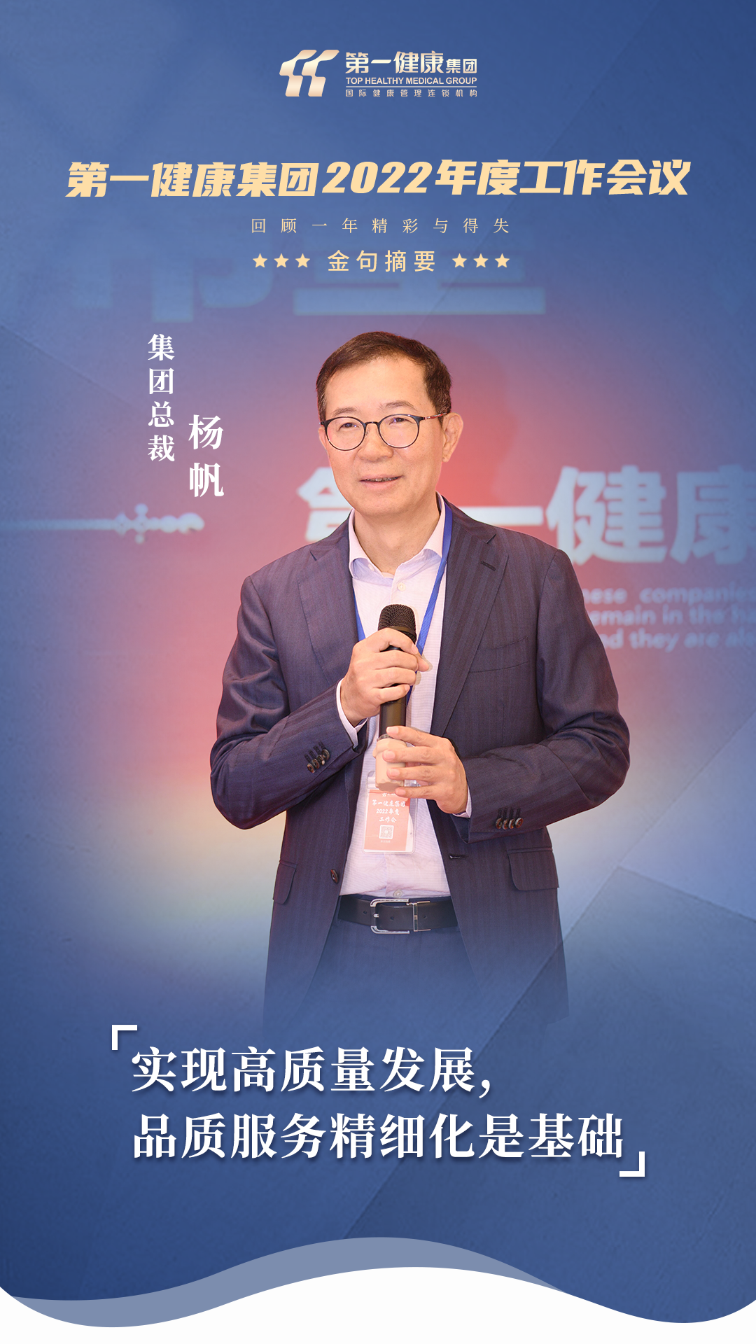 成绩属于过去,奋斗赢得未来。2023年,第一健康集团将继续按照董事长及总裁的重要指示,持续强化医疗服务能力,不断探索创新线上线下结合的智慧医疗服务路径,秉承“引领行业品质标准,提升国人生命质量”的企业使命,为客户带来更多的优质医疗服务和产品,助推行业健康快速发展,让第一健康的品质服务水平再上一个台阶。