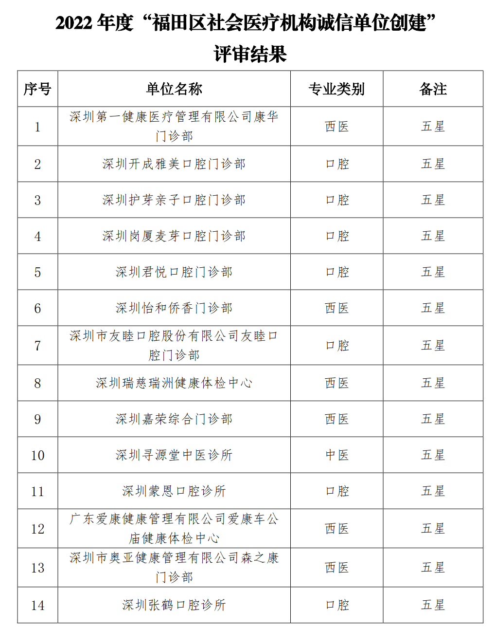 同样,福田区社会医疗机构行业协会在福田区卫健局的指导下,开展2022年度社会医疗机构医疗服务整体质量评估与指导工作。在保证公平、公正、公开的基本要求下,协会通过修订“指标体系”、动员学习、自查自纠、专家评审的方式,对福田区128家西医综合类社会医疗机构和143家中医类社会医疗机构进行现场评估与指导。经过严格的层层筛选,第一健康在本次医疗服务整体质量评估中,以 102.9分的成绩脱颖而出,在“2022年度福田区(西医综合类)社会医疗机构医疗服务质量整体评估与指导”活动中排名第一!