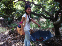 历时一个小时,大家来到了目的地——光明农场。下车后,领导进行了协调分组,开始了活动的第一项——采摘荔枝。因为刚刚下过雨,通往荔枝园的弯曲小路有些泥泞,大家相互搀扶,来到了园区;由于绝大部分荔枝高挂于无法伸手触及的枝头,大家各显神通,爬上树枝的采摘的,摇晃树干的,用长棍勾取的。虽然炎炎烈日当头照,但大家兴致高昂,热情高涨,不一会就采摘了一大堆新鲜的火红荔枝,放松心情,品味佳果,大家在这满山遍野的荔枝林中享用着清甜可口的荔枝!当年“一骑红尘妃子笑”的故事更让荔枝披上了一层迷人的光辉。吃着自己用辛劳汗水采摘的果实,感觉分外香甜。