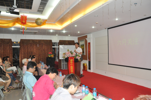 首先,主持人宣布大会开始,由公司副总裁吴总代表各部门领导进行了上一个月得工作总结,吴总结合各部门的统计数据,仔细分析了5月份各项指标达标情况,随着他的话语,屏幕上展现出一幕幕喜人的成绩,全体员工报以热烈的掌声。