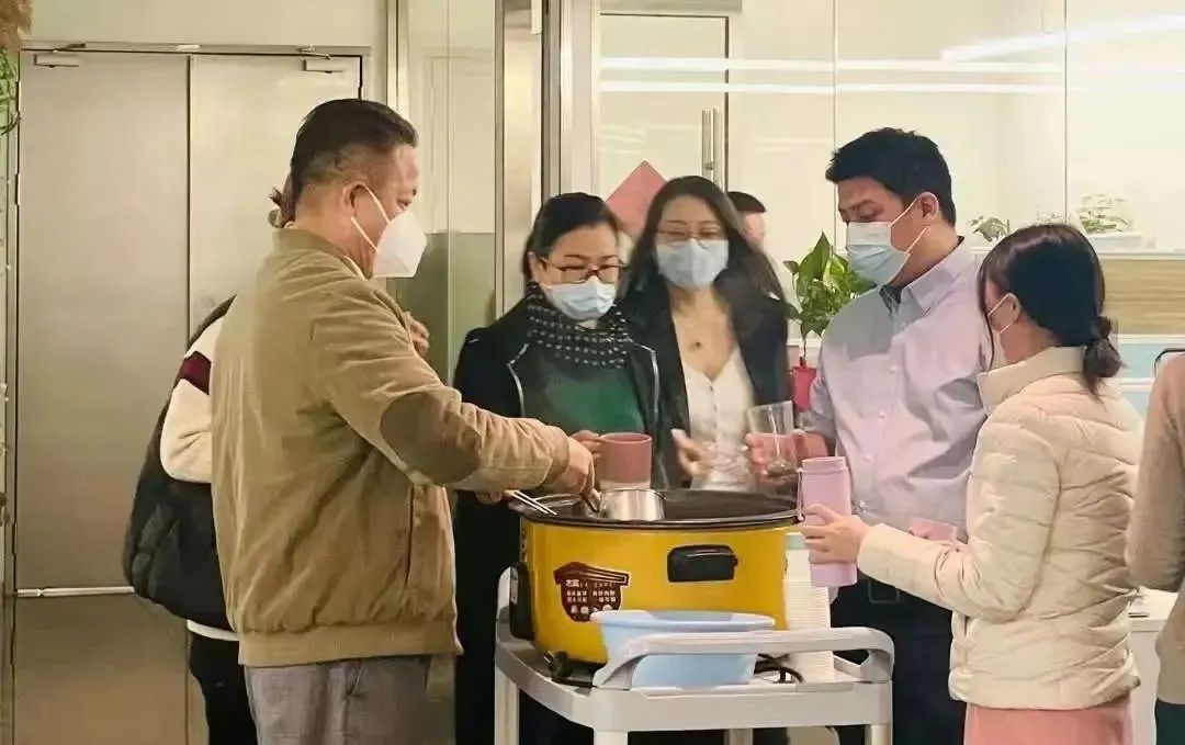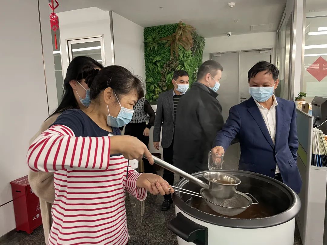 为缓解大家的焦虑与恐慌,帮助增强身体的抵抗力,第一健康安排后勤人员每日为在岗员工熬煮防疫茶汤;