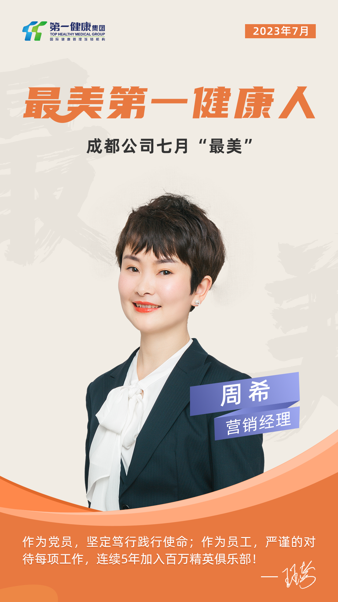发现美、传播美、践行美。7月起,第一健康集团面向全体员工开展月度“最美第一健康人”征集评选活动,经过组织推荐、人力部复选、分公司总经理评选、集团选定等多个环节,评选出各分子公司的月度“最美第一健康人”并由集团总裁办根据相关“先进事迹”从中评选出集团最美第一健康人”下面我们一起来一睹TA们的风采吧~