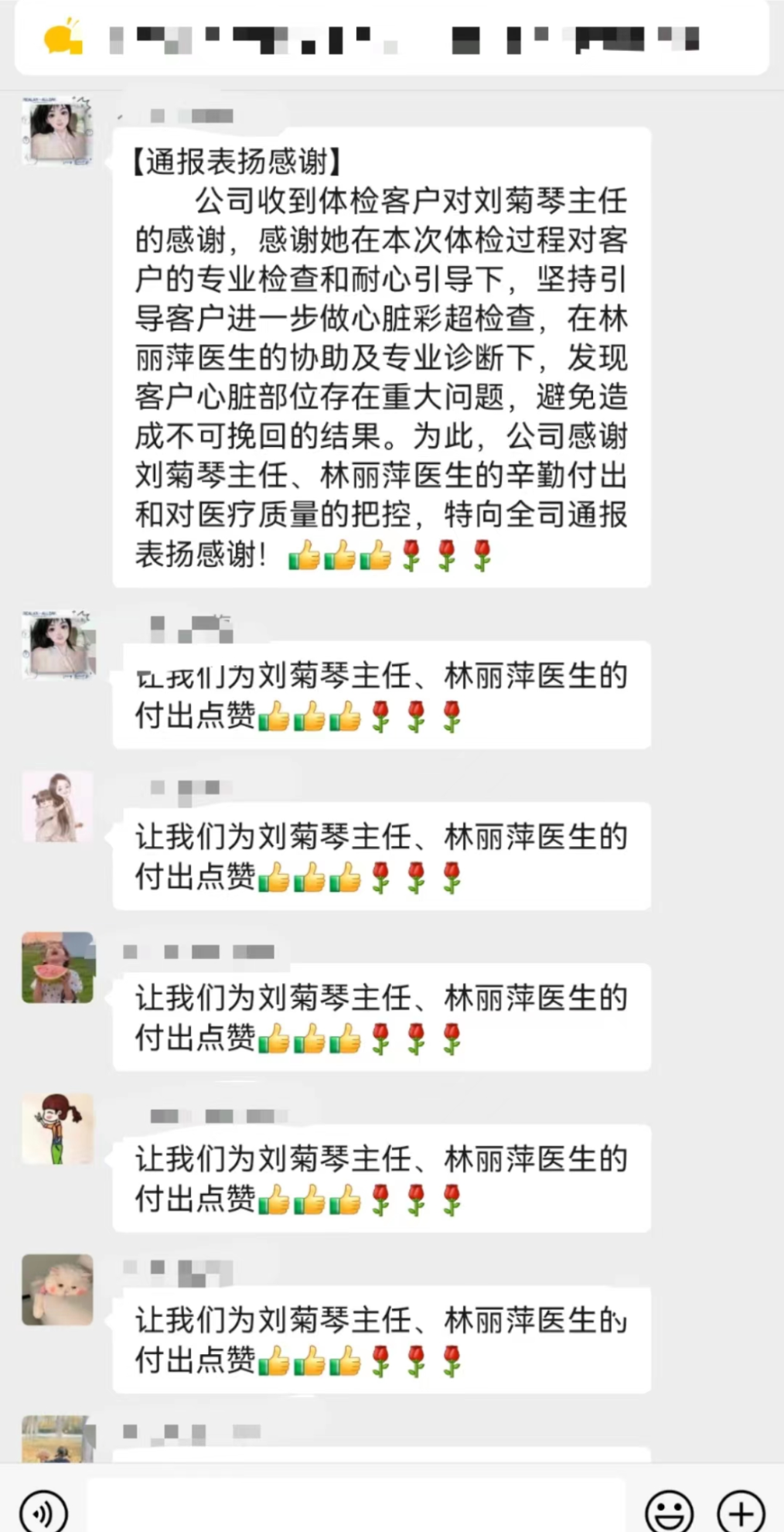 因此,客户对于体检过程中刘菊琴主任专业和敬业给予了充分的肯定,为刘菊琴主任、林丽萍医生的辛勤付出和对医疗质量的把控给予了深深的肯定。