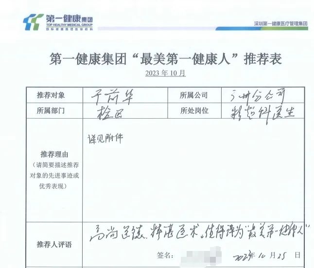 2023年7月起,第一健康集团面向全体员工开展月度“最美第一健康人”征集评选活动,经过组织推荐、人力部复选、分公司总经理评选、集团选定等多个环节,评选出各分子公司的月度“最美第一健康人”。由集团总裁办根据“先进事迹”、分公司总经理点评,工作成绩等多个维度,评选出集团十月“最美第一健康人”。